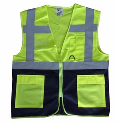Emniyet İkaz Yeleği Cepli Yönetici Tipi CE Belgeli Sarı Lacivert L