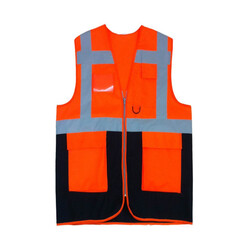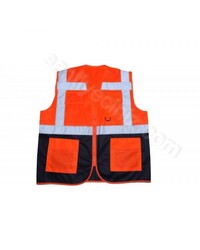 Yüksek görünürlük sağlama amaçlı 2 adet yatay, 2 adet omuzlardan asağı inen 5 cm. genişliğinde reflektör şeritlidir. 2 adet önde ve 1 adet sol üstte cebi vardır. Sağ üstte asetat isimlik bulunur. Ön kısmı fermuarlıdır.