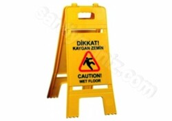 Her iki yüzeyde’ de DİKKAT! KAYGAN ZEMİN ve CAUTION WET FLOOR yazılıdır.